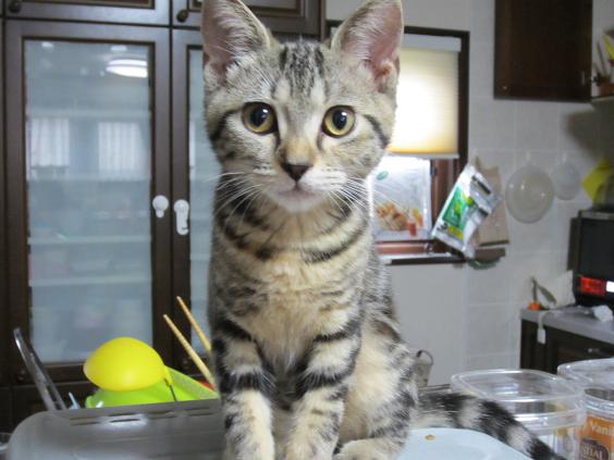 先日は次男がよく使う踏み台に乗ってIHまでひょいとのちゃってびっくり!!さすが猫!!と歓心してしまったけど、これ大きくなったら踏み台なしでひょいと上っちゃう?(^^;A